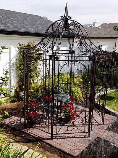 Whether you're dreaming the day away with a good book or sharing an afternoon with friends, time seems sweeter beneath this delightfully ornate, more than 10-foot-tall, octagonal garden gazebo!