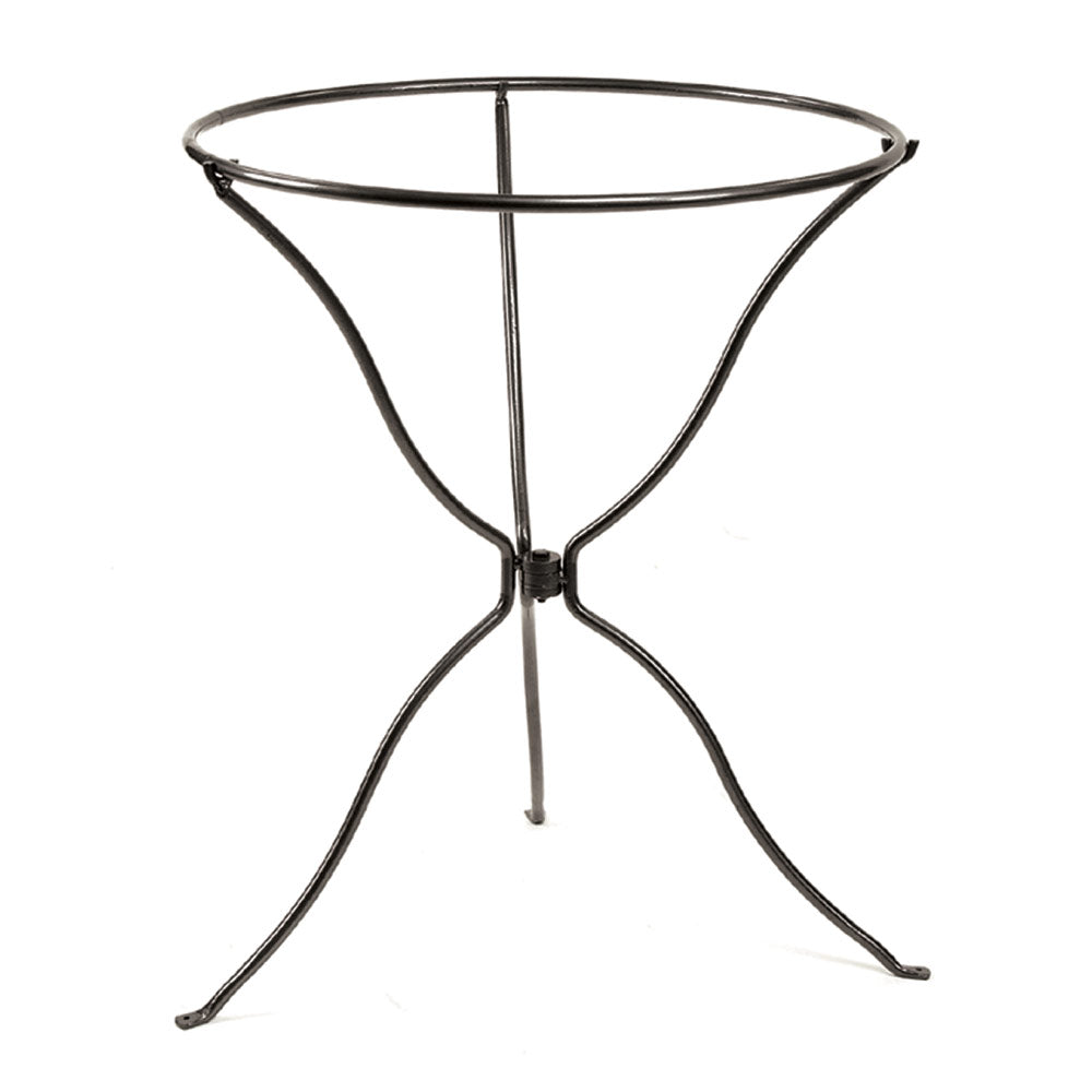 Featuring a three-legged design for stability and made of sturdy wrought iron. Can be easily folded for off-season storage. The stand is finished with a Graphite powder coating for weather resistance.