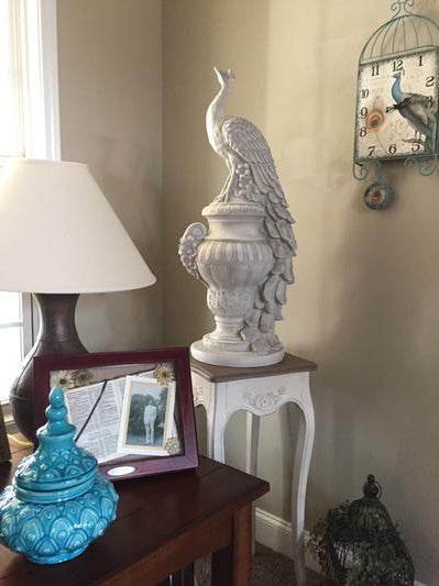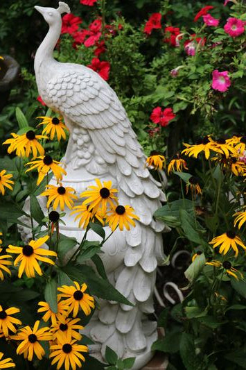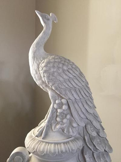 Invite the majestic beauty of the peacock into your garden landscape with our Royal Peacock on an Urn Statue.