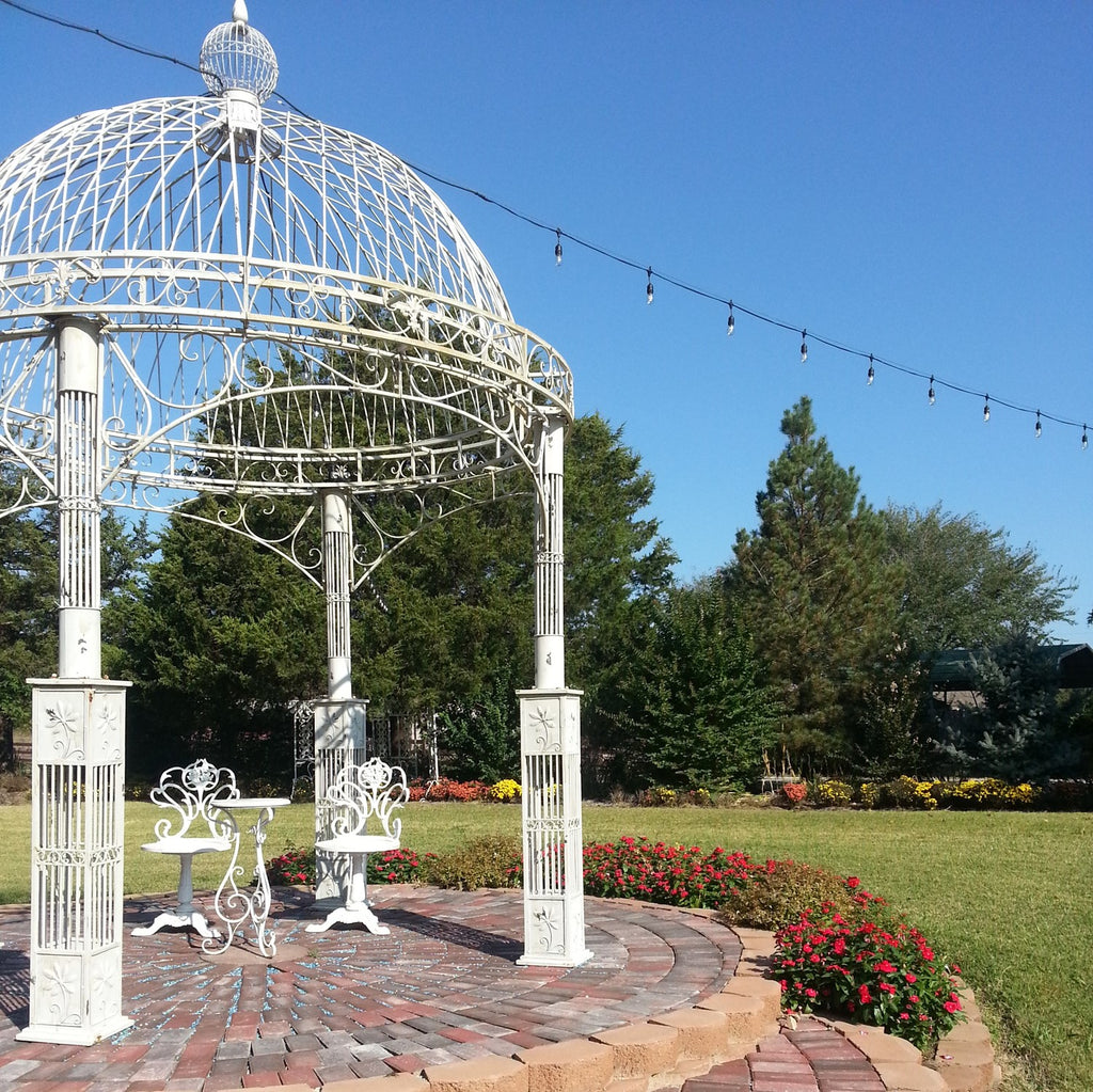 Featuring a Domed Roof top and Greco-Roman inspired ironwork design, this quintessential garden structure is the perfect centerpiece for your landscape.